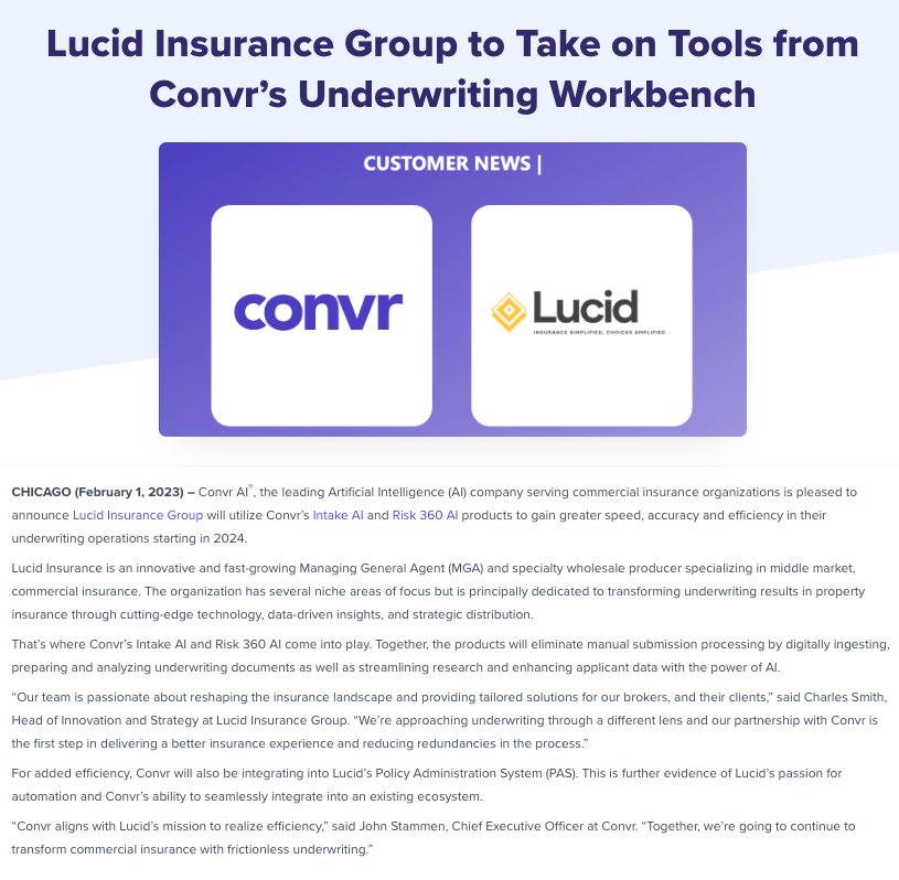 - Lucid Insurance Group Achieves Straight-through Processing with Convr